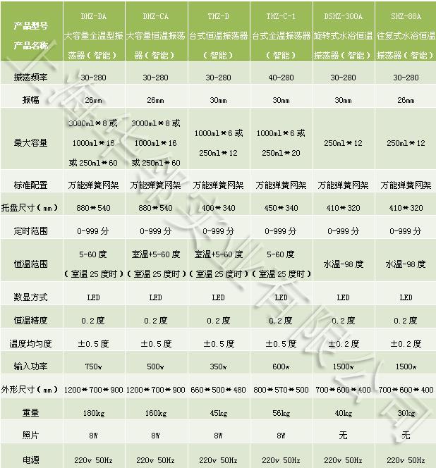 DHZ-CA大容量恒温振荡器技术参数: